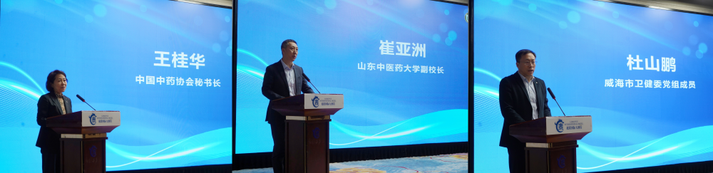 中国中药协会秘书长王桂华、山东中医药大学副校长崔亚洲、威海市卫健委党组成员杜山鹏出席会议并致辞。