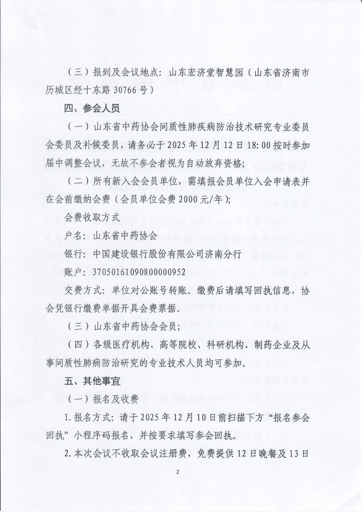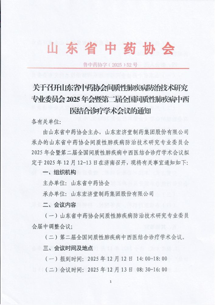 关于召开山东省中药协会间质性肺疾病防治技术研究专业委员会2025年会暨第二届全国间质性肺疾病中西医结合诊疗学术会议的通知
