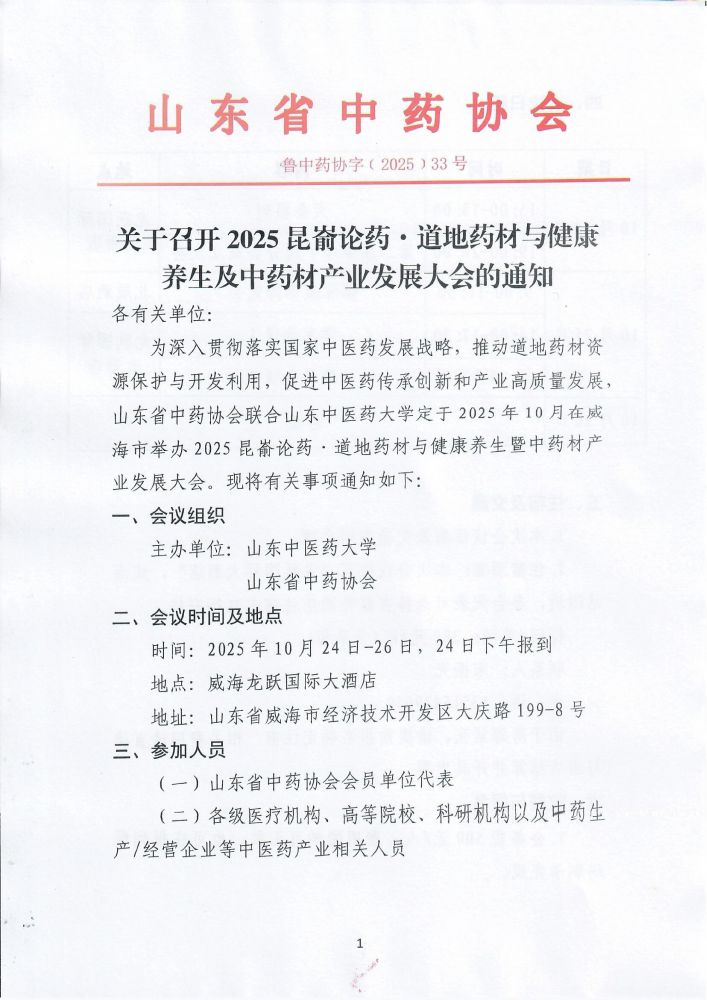 关于召开2025昆嵛论药·道地药材与健康养生及中药材产业发展大会的通知