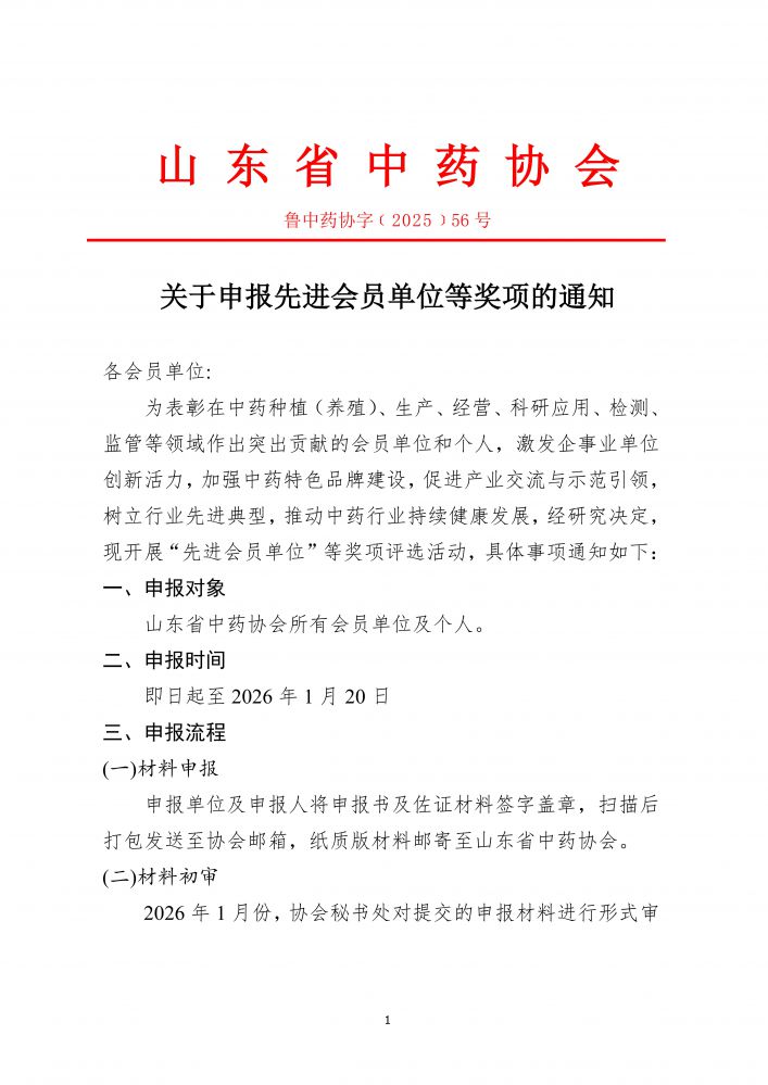 关于申报先进会员单位等奖项的通知