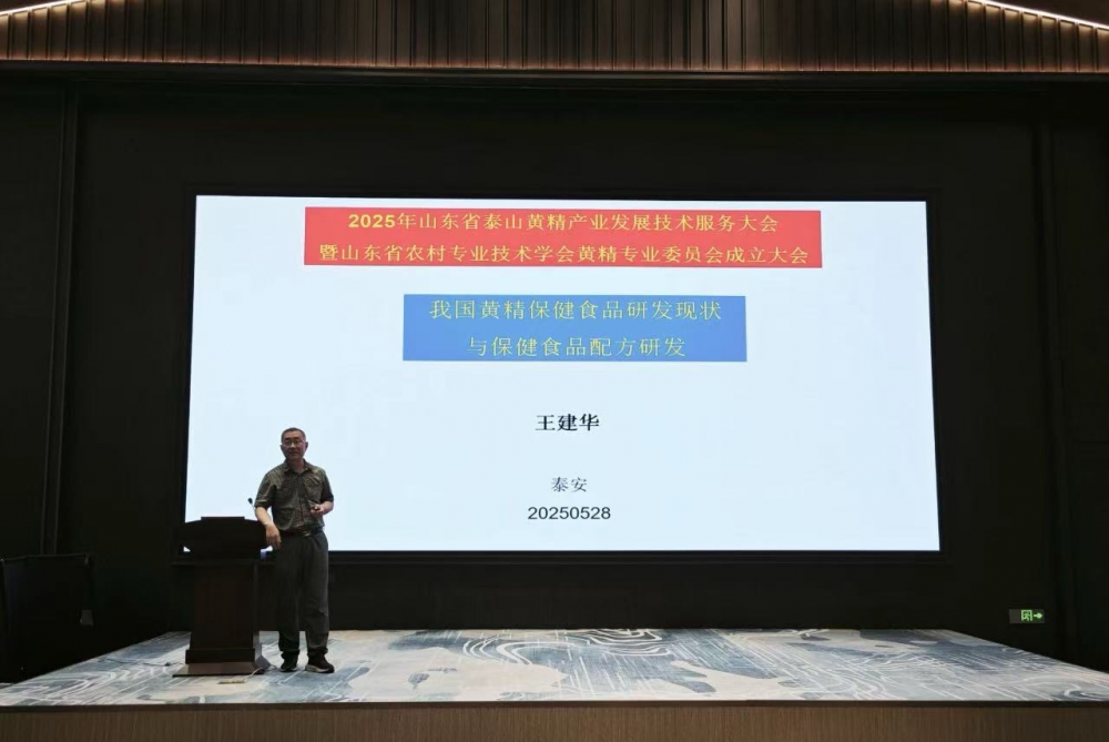 大会聚焦黄精产业的科技创新与成果转化,特邀俄罗斯工程院院士、南京农业大学教授郭巧生,浙江农林大学教授斯金平等权威专家作专题报告。山东农业大学王建华教授作为大会核心发起人,以《我国黄精保健食品研发现状与保健食品配方研发》为题,深入剖析黄精药食同源价值与产业化前景,为泰山黄精产业升级提供了重要技术支撑。